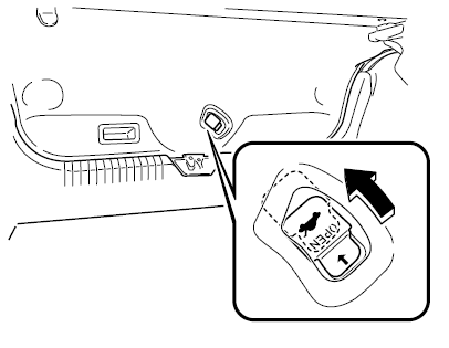 Le levier intérieur de déverrouillage du coffre est situé sur l'intérieur du couvercle de coffre.